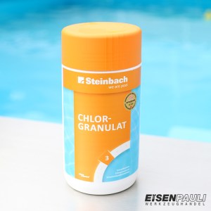 Das Chlorgranulat in Wasser auflösen und im Idealfall über den Skimmer zuführen.